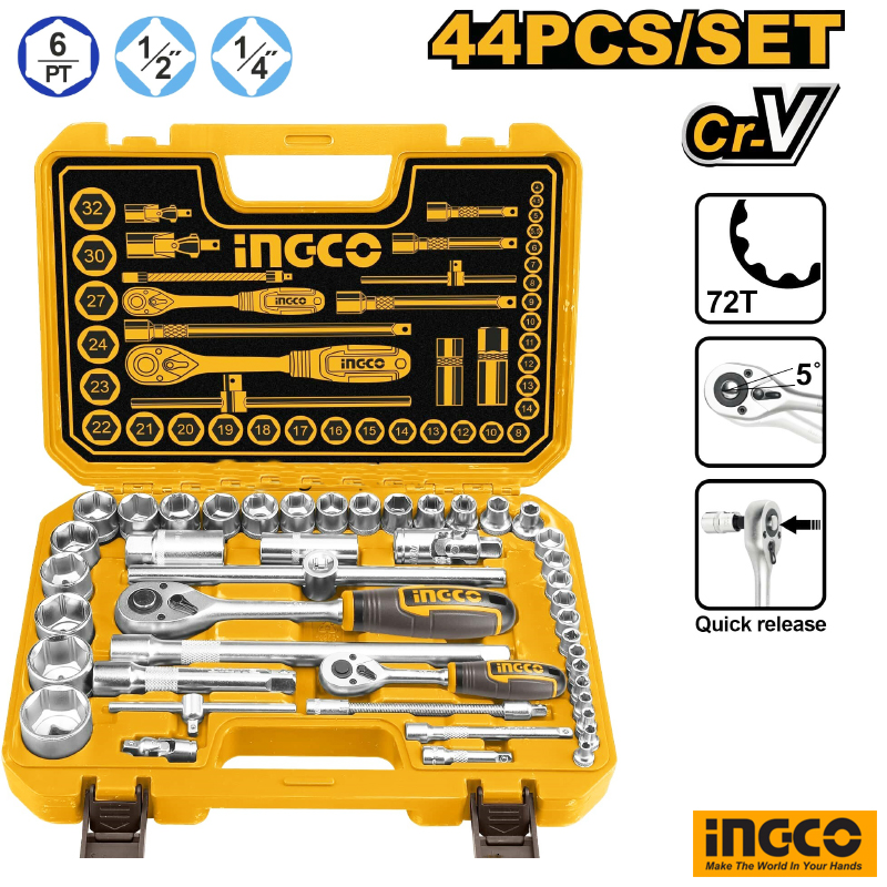 INGCO 44 pcs Socket Tool Set 1/2 & 1/4