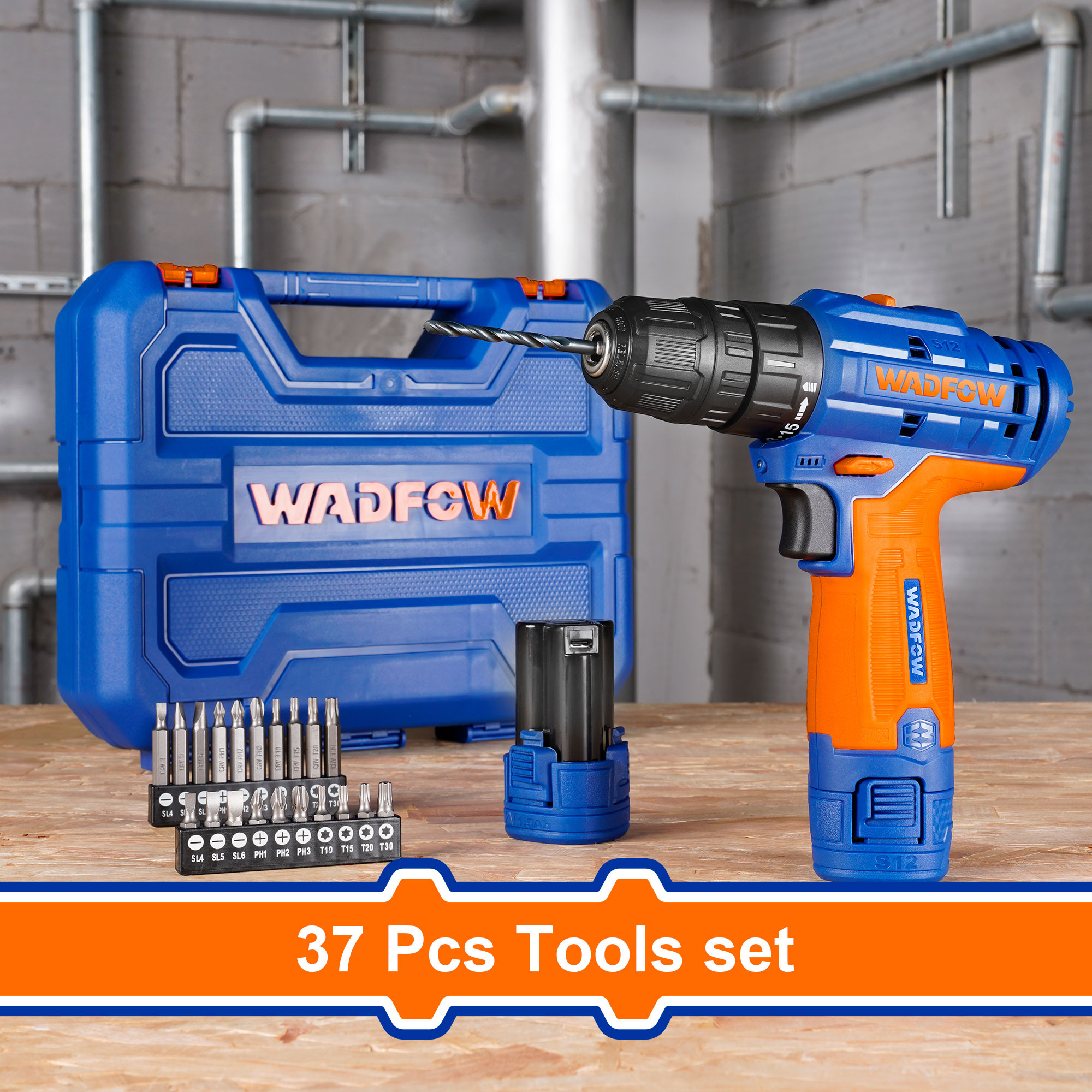 WADFOW Cordless Drill 12V (2x Battery)