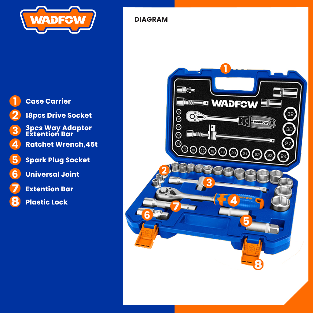 WADFOW 1/2 Box Socket Set 25 Pcs
